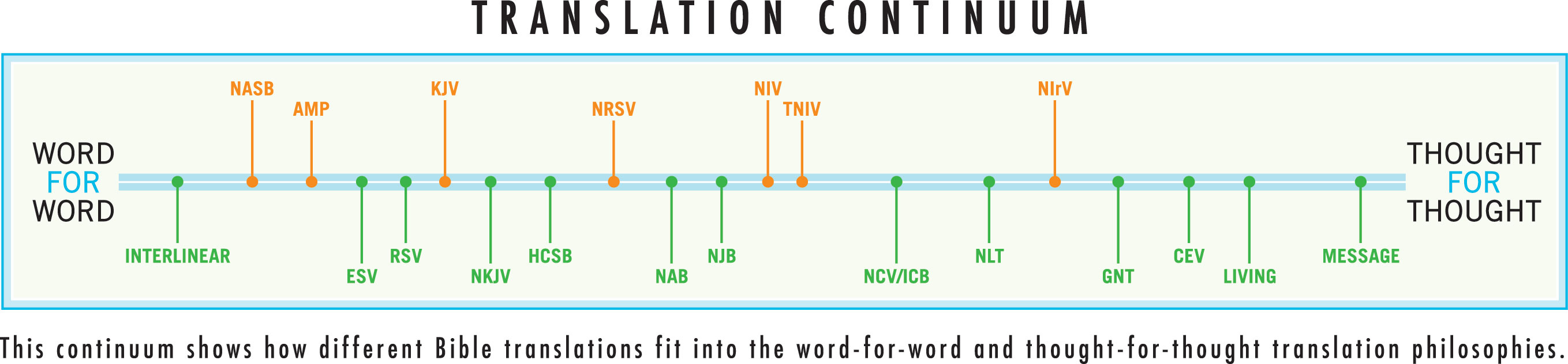 There are many great resources that we can take advantage of when it comes to reading God's Word. We at First Family Church use the English Standard Version (ESV) in our worship services, but also recommend the NASB, the CSB, the NKJV, and the KJV. It's important to use a translation that is literal or "word for word" so that it conveys what God intended. Below, is a helpful chart that will give you an idea about where specific translationas fall, and on the right hand side of the page (if you view this on your phone, it will also be below), are some resources to assist you in reading.
